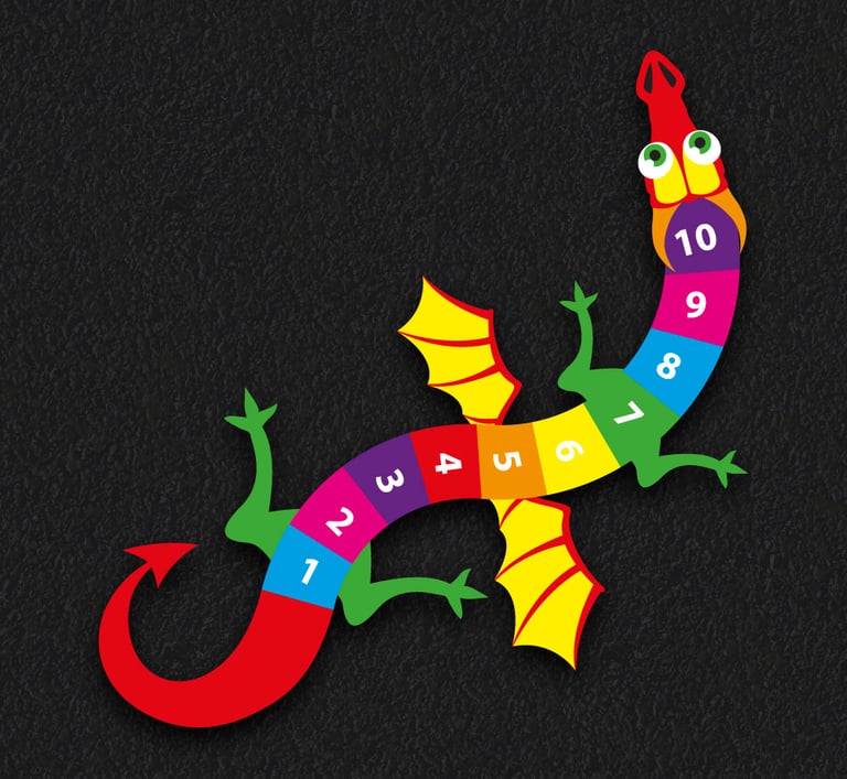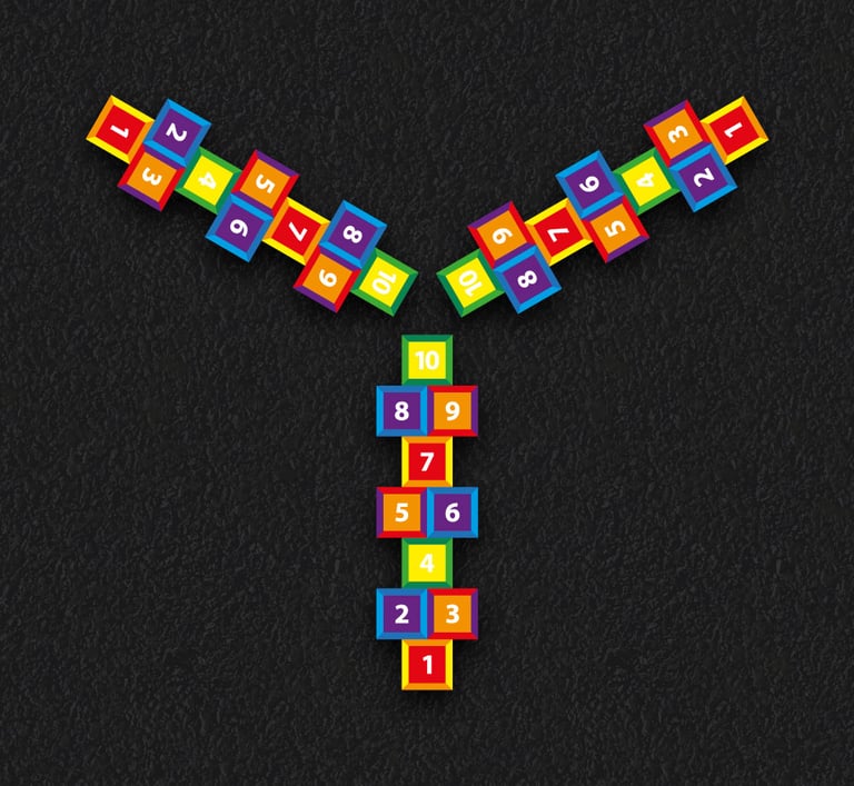 SAZALP markings are designed to add a pop of color and excitement to any playground. From hopscotch to four square to educational games and more, our markings can be customized to fit the needs and interests of your students.